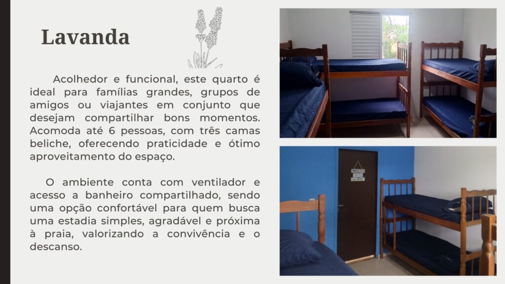 Locação de QUARTOS compartilhados ou individuais aproximadamente 700mts da Praia da Salinas. Temos Quartos  disponíveis com 6,4,3,2 lugares com banheiros individuais ou compartilhados. Cozinha Ampla com utensílios básicos necessários. Nosso objetivo é proporcionar conforto e qualidade no simples para que você viva uma experiência em nossa acomodação.